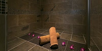 岩盤浴でふたり仲良くデトックス効果汗を沢山かくことで代謝を妨げている老廃物を排出しむくみ解消や脂肪燃焼が期待できます。